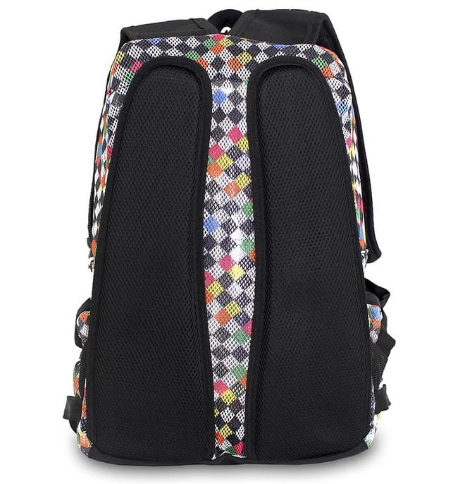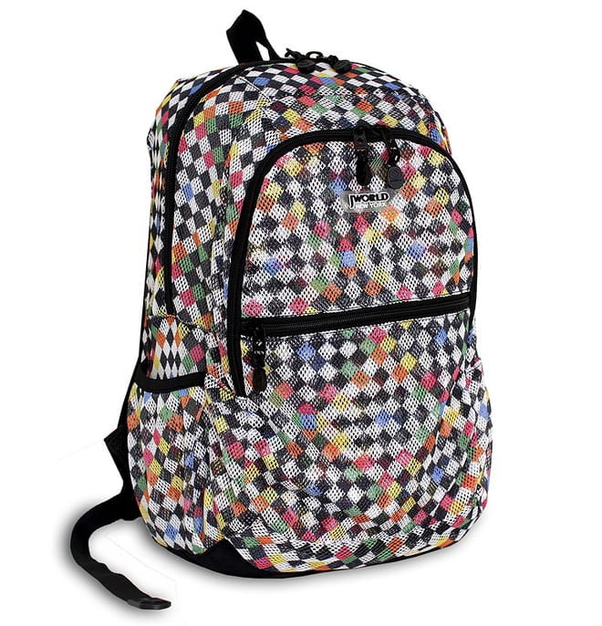 Supermodny plecak J World Mesh Checkers to unikalny styl prosto z Nowego Jorku, połączenie funkcjonalności, wygody i niespotykanego wyglądu! Plecak szkolny pokryty jest siateczką z nadrukiem kolorowej szachownicy, co daje na prawdę unikatowy efekt! Model Mesh wyposażony jest w bardzo wygodny tył dopasowany do kształtu pleców oraz wiele kieszeni dla łatwej organizacji ekwipunku szkolnego. Napoje będziesz mieć zawsze pod ręką, gdy umieścisz butelkę w jednej z bocznych kieszonek.